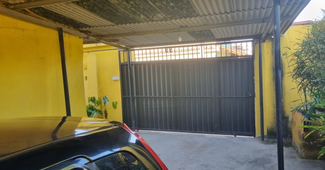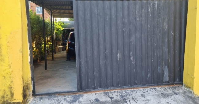 QUINTAL COM GARAGEM COBERTA PARA 2 CARROS, ÁREA DE SERVIÇO, CANIL E ENTRADA COM PORTÃO DE CORRER.