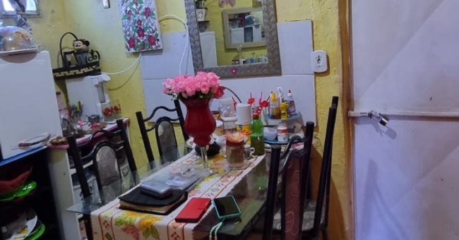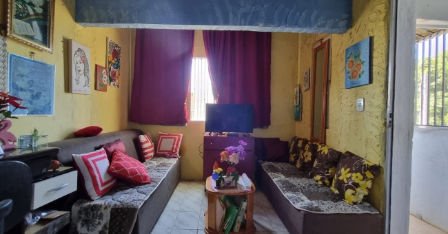 PARTE DE CIMA: 1 QUARTO, SALA, VARANDA, BANHEIRO, COPA, COZINHA E ÁREA DE SERVIÇO.